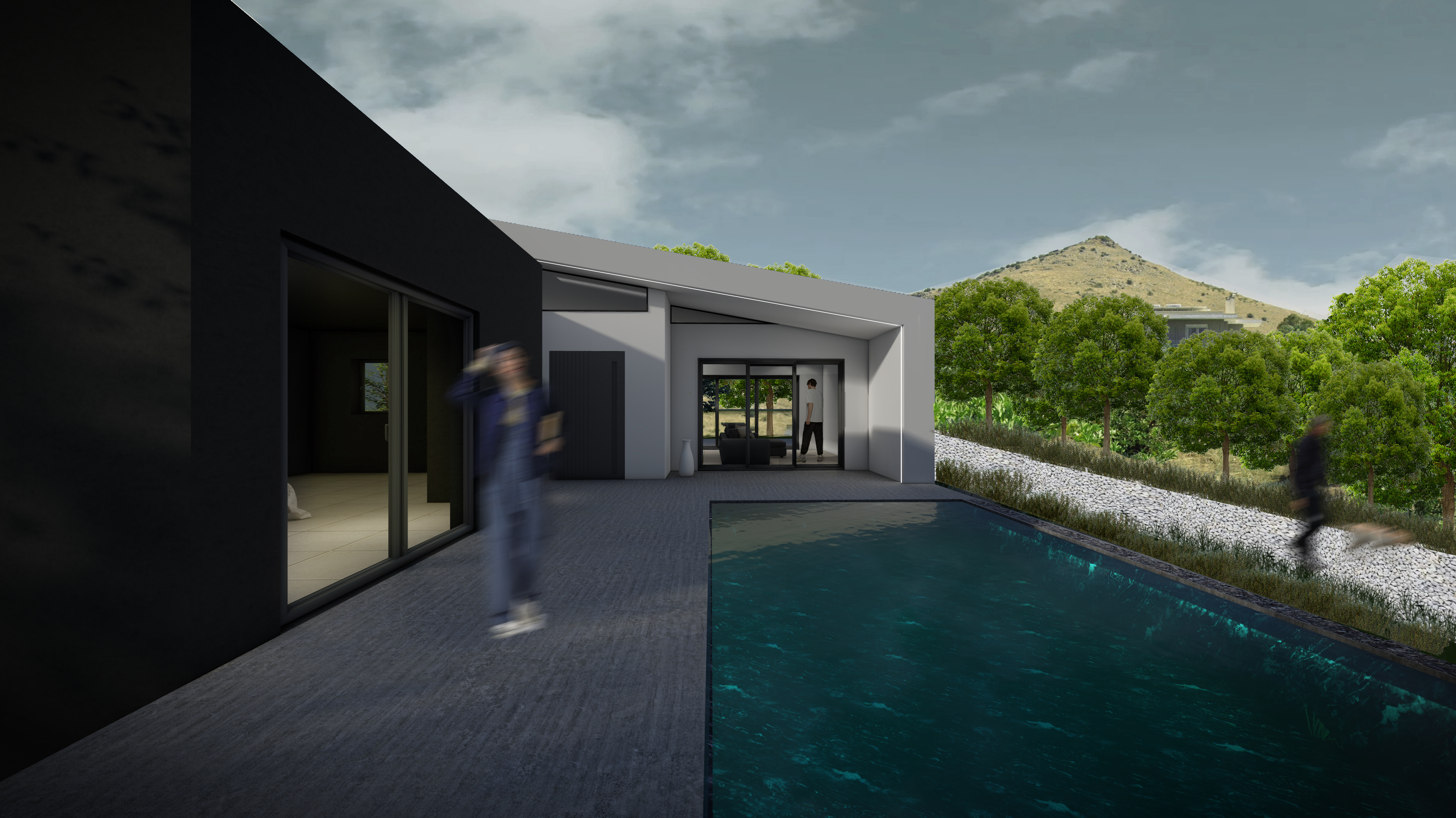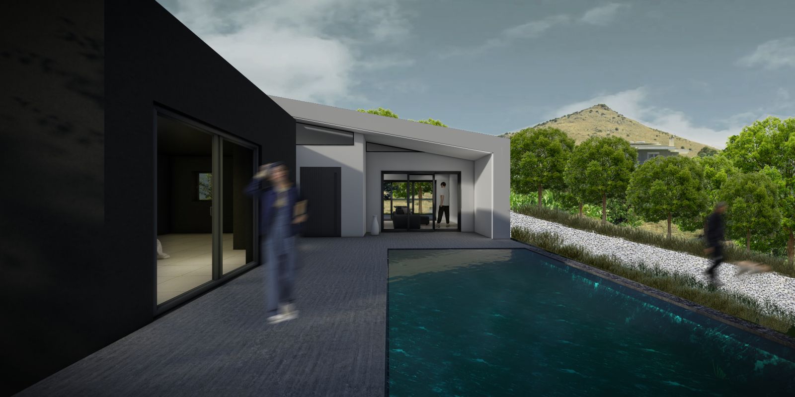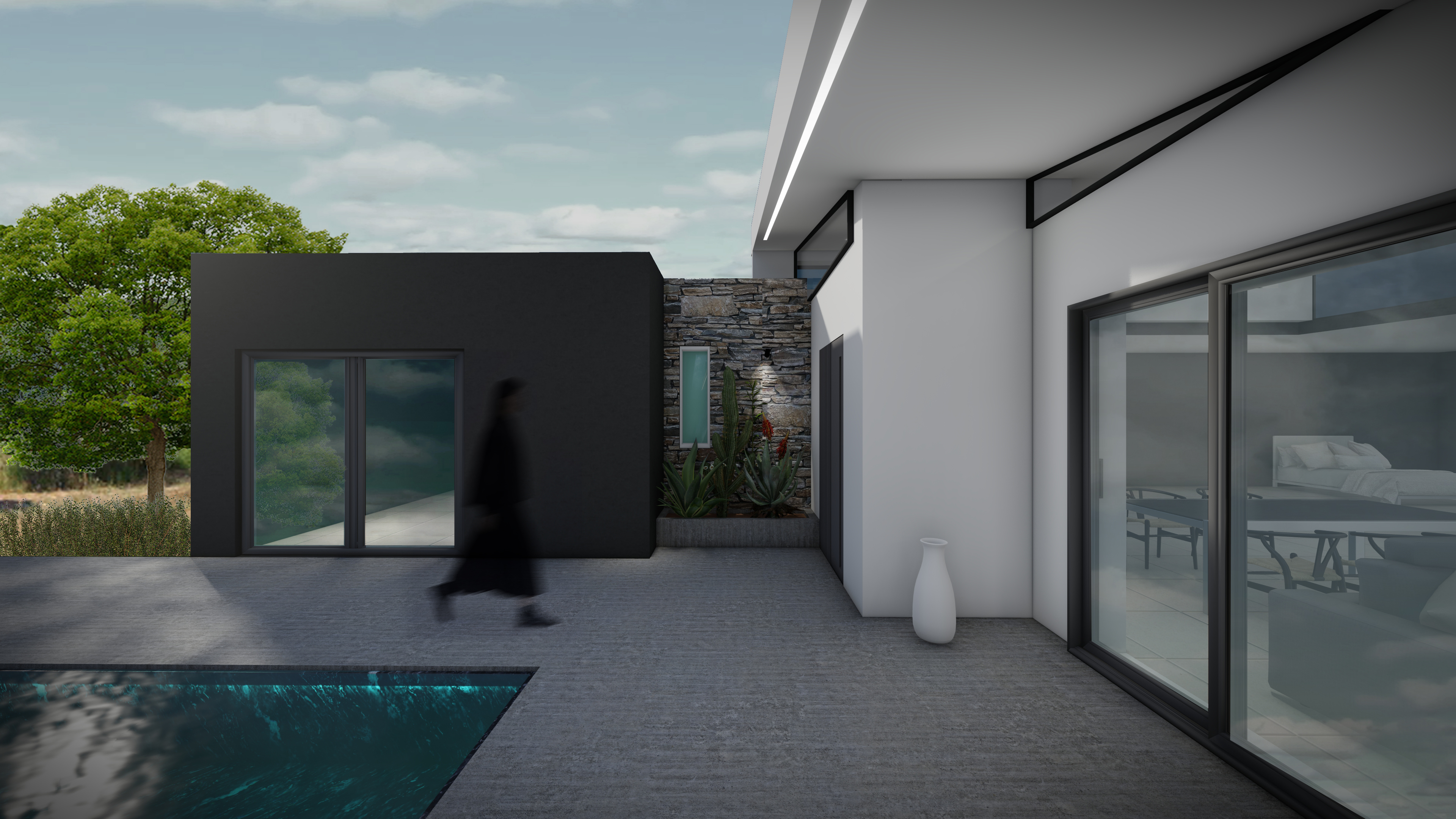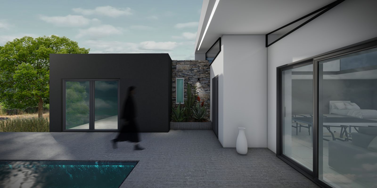 A house that converses with the landscape, seamlessly blending into its natural surroundings, embodying contemporary architecture through simplicity and geometry. Its composition of volumes feels like a dialogue between light and shadow, between white and black, between openness and enclosure.